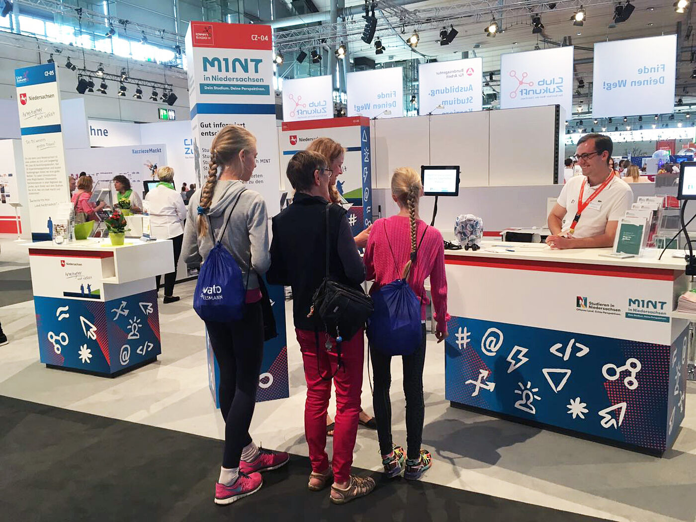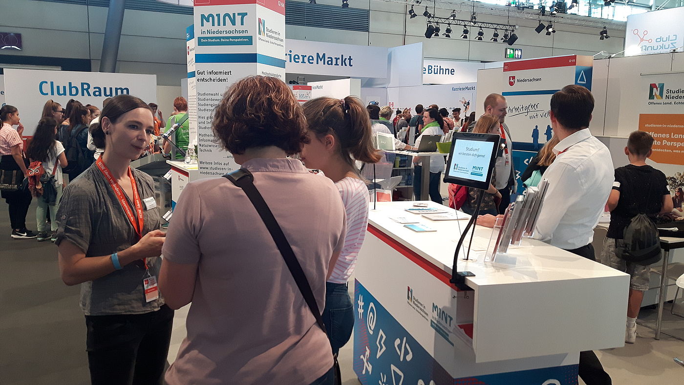 Schüler*innen informieren sich am Stand von Studieren in Niedersachsen bei der Messe IdeenExpo