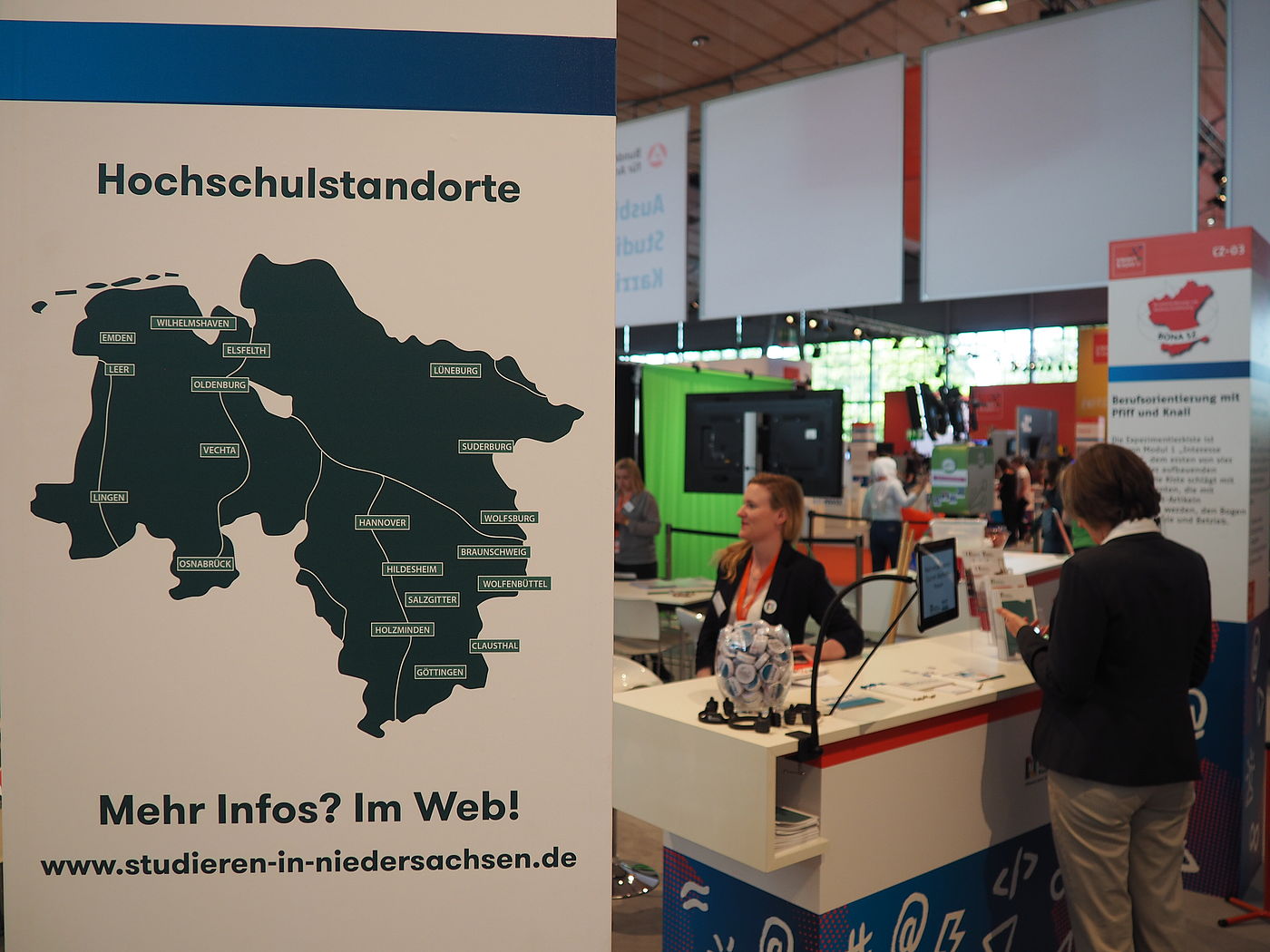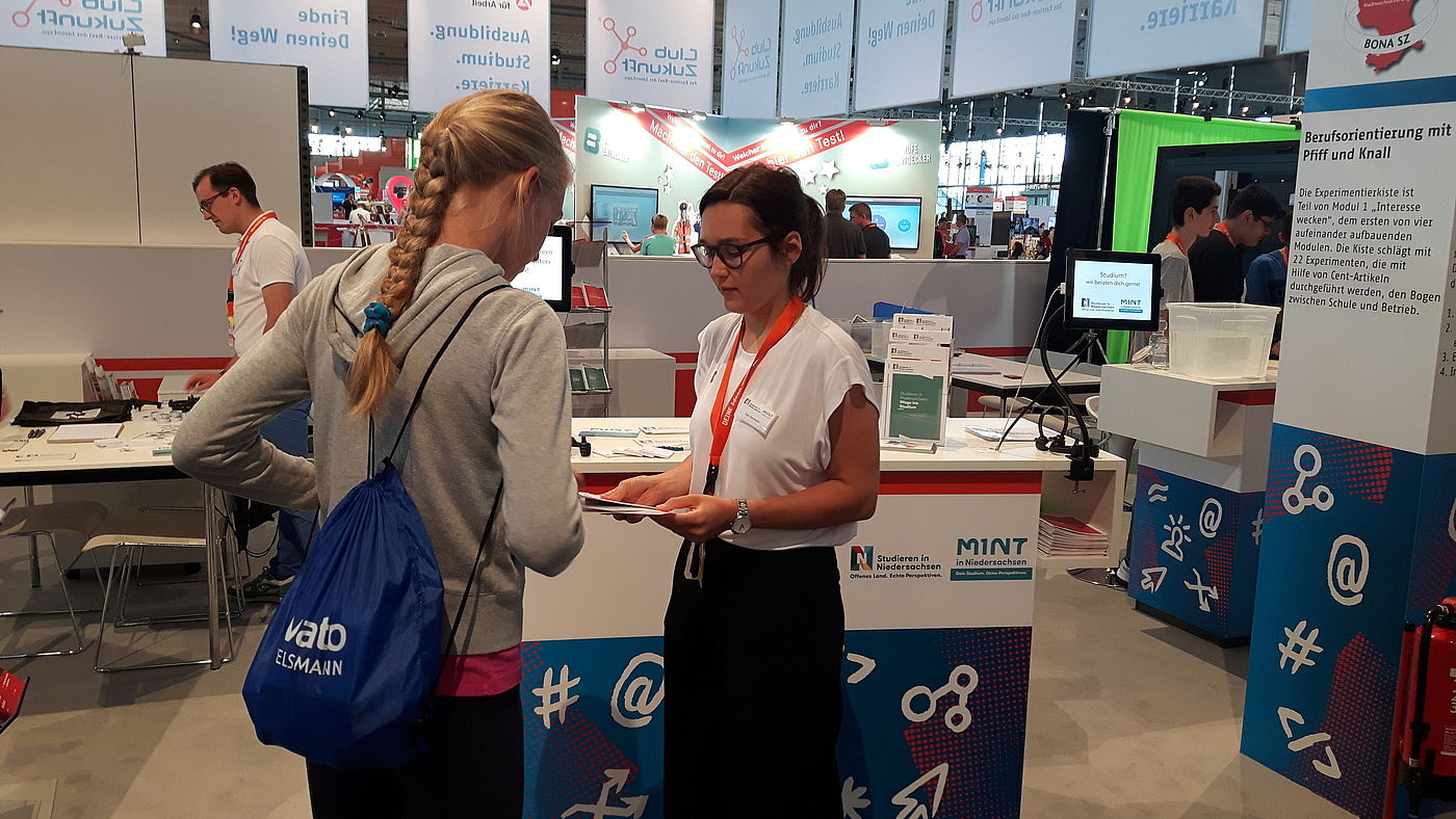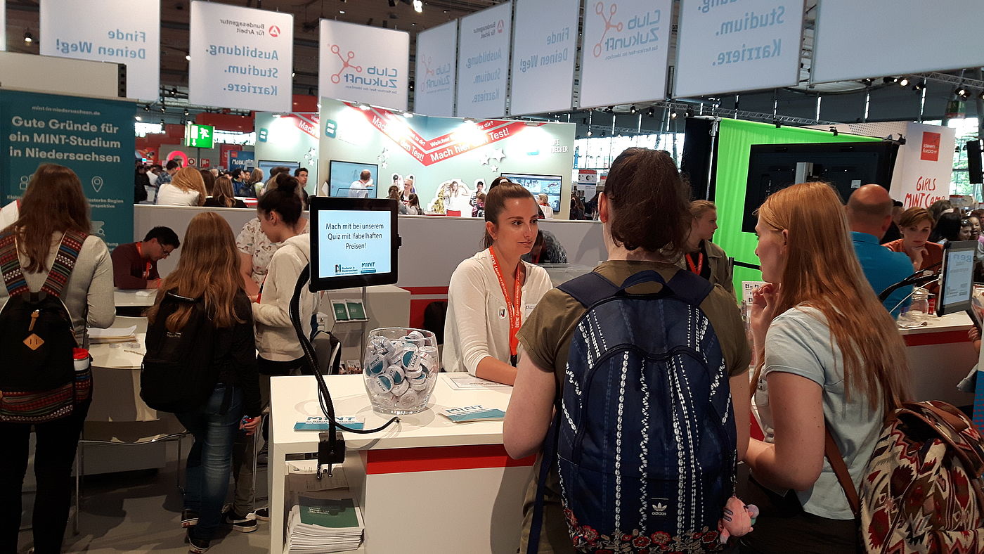 Beraterinnen und Berater aus den Hochschulen halfen den Studieninteressierten, einen ersten Überblick über die vielfältigen Studienangebote zu erlangen und Unterstützungsangebote bei der Studien- und Berufswahl kennenzulernen. Neben Information und Beratung wurde den Besuchern das Thema "Studieren" auch spielerisch näher gebracht. So konnten bei den Quiz "MINT" und "Studieren in Niedersachsen" tolle Preise gewonnen werden.