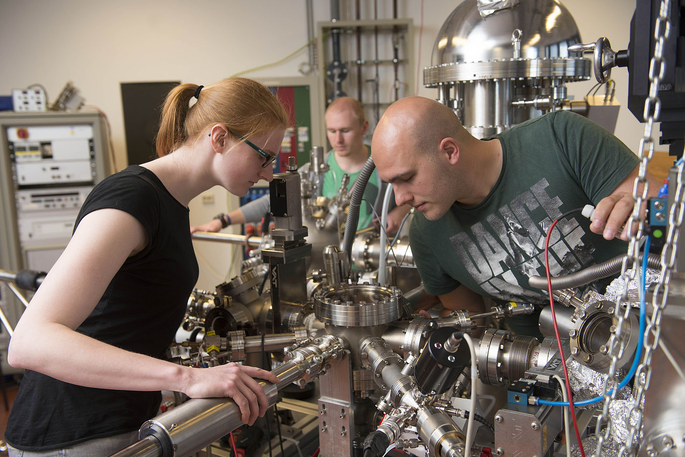 Studierende arbeiten gemeinsam an Maschinen im Labor der Universität Osnabrück