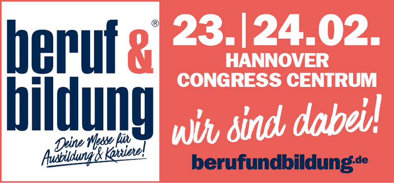 Die beruf & bildung findet in der Eilenriedehalle und Glashalle des Hannover Congress Centrums statt (Theodor-Heuss-Platz 1-3, Anfahrt auch mit der Stadtbahnlinie 11 Richtung Zoo bis zur Haltestelle HCC). Der Eintritt ist frei. Am Freitag, 23. Februar, ist von 9 bis 15 Uhr geöffnet, am Samstag, 24. Februar, von 10 bis 16 Uhr. Besuchen Sie uns am Stand 173 und entdecken Sie #echteperspektiven!