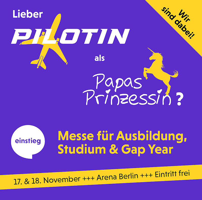 Die Einstieg Berlin findet in der Arena Berlin statt (Eichenstraße 4, 12435 Berlin). Der Eintritt ist frei, eine Anmeldung vorab erforderlich. Am Freitag, 17. November, ist von 9 bis 15 Uhr geöffnet, am Samstag, 18. November, von 10 bis 16 Uhr. Besuchen Sie uns an Stand S2 und entdecken Sie #echteperspektiven!