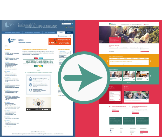 Diejenigen, die unser Webportal schon seit Jahren für die Recherche zum Studienangebot in Niedersachsen nutzen, sind vielleicht im ersten Augenblick vom neuen Portal überrascht. Rein äußerlich hat es auch nicht mehr viel gemein mit unserer alten Website. Aber keine Sorge: Vieles hat sich verändert - die Qualität unser Informationen jedoch nicht. Hier erklären wir Ihnen, was das neue Portal zu bieten hat: