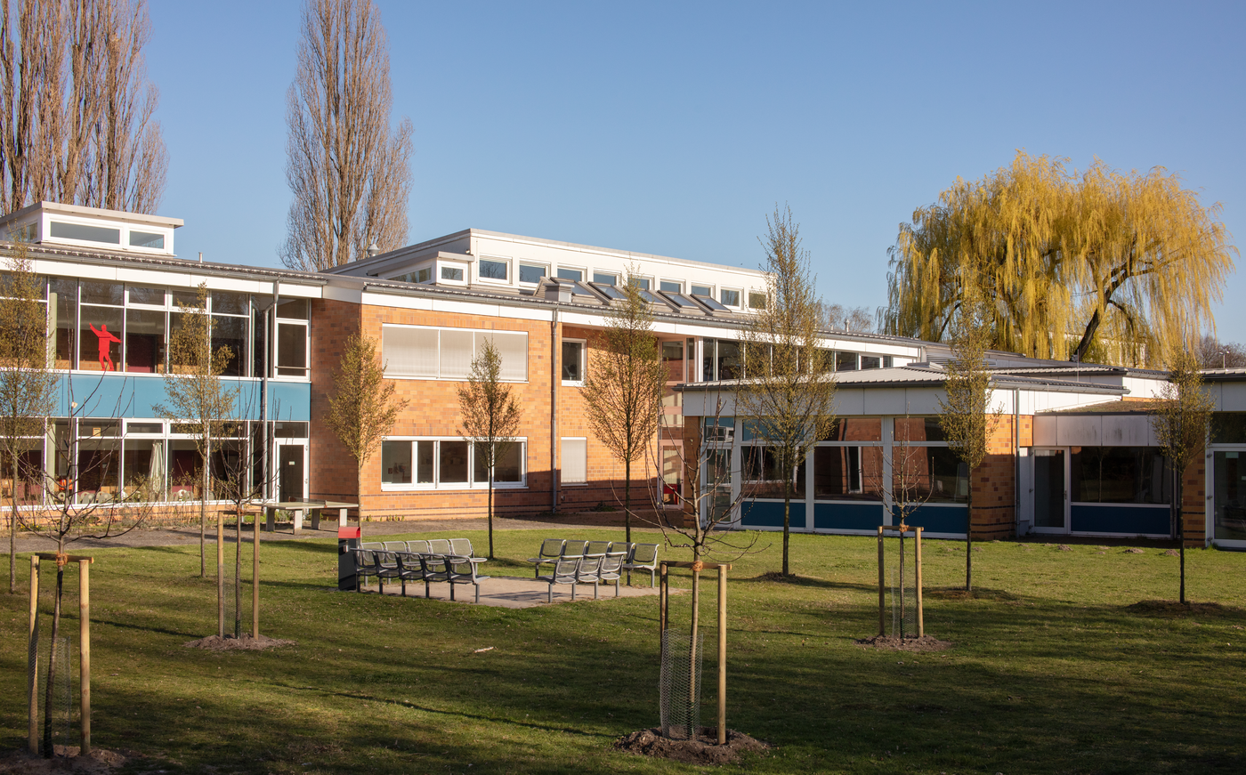 Hochschulgebäude der HS Hannover mit grünem Innenhof
